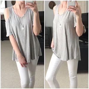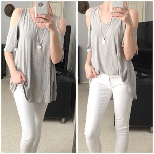 LAST ITEM▫Soft Grey Bamboo Cold Shoulder Basic Tee