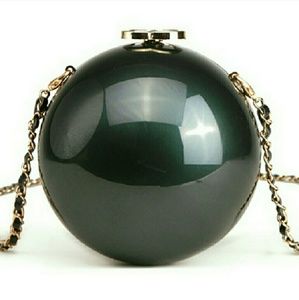 Different is divine in this sheeny pearl silouette purse which comes with gold lock closure (push to open). Soft velvet lining and detachable braided gold link shoulder strap. Measures: 5 3/4" wide-high-deep. Strap is 24" long from shoulder. Materials: Acrylic.(#BH)