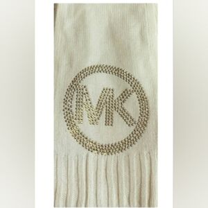 Michael Kors Logo Scarf White Knit Goldtone Studded Logo 72"L X 8"W. NEW