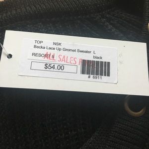 Bought brand new from boutique in Hawaii - Bamboo Sky. Size large, runs small. Thicker sweater material. Lace up style. High, low style.