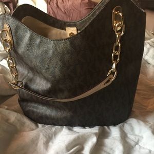 Michael Kors Monogrammed shoulder bag. Barely used. Mint condition.