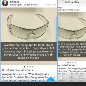 Authentic Christian Dior Sunglasses Frame is silver lenses are clear ! Lenses are in good preowned condition ! Frame is good as well. They resemble the Rihanna Dior Sunglasses ! Very trendy cute and stylish ! Please see photos. Open to offers REASONABLE offers only please ! Blow Out SALE !!! 💥💥Please do not offer less !! PLEASE do not Low ball!!
