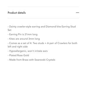 Brand new! Diamond Kite Crawler + Stud Set in Rose Gold. I have 2 sets available! Retail $85+tax No trades/holds