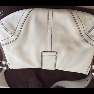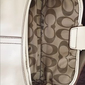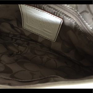 Small leather coach bag, winter white. Only used a few times (on vacation). Small black mark inside (see picture).