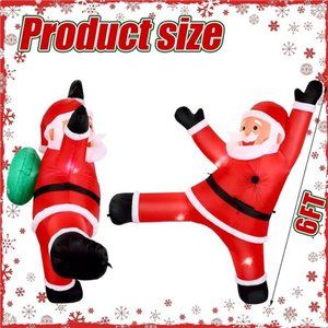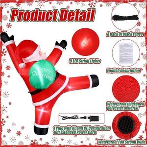 Specifications: Material: waterproof polyester fabricColor: black, red green, whiteSize: 5.9 ft in heightPackage includes: 1 x Christmas Santa inflatable1 x Blower fan1 x Adaptor plug1 x Manual1 x Rope5 x LED lightNotes: Manual measurement, please allow slight errors on size. The color may exist a slight difference due to different screen displays. Winding risk may exist, please keep our product away from children.