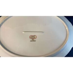 Valmont China - Royal Wheat pattern: Platter 14" x 10" (one chip on front and one on back noted in photos), x12 Dinner Plates 10 1/4" (11 in excellent condition with no chips or cracks, one has chip noted in photos), x12 Dessert Plates 6 1/2" (Great condition with only minor wear on outer rim of a few pieces noted in photos), x12 Tea Saucers 5 3/4" (11 in excellent condition and one has a minor chip on outer rim), x2 Bowls 7 1/2" (excellent condition with no chips or cracks), x4 Serving Bowls 10 3/4" x 7 3/4" (excellent condition with no chips or cracks), Soup Tureen 10 1/2" handle to handle, 7 1/2" inside rim (excellent condition with no chips or cracks), Sugar 6" handle to handle, 3 1/2" inside rim (excellent condition with no chips or cracks), Gravy Boat 9 1/2" Plate, boat is 8 1/4" (excellent condition with no chips or cracks), Creamer 5 3/4" including handle (excellent condition with no chips or cracks), and x12 Teacups (10 in excellent condition with no chips or cracks and two have chips as shown in photos). 59 pieces in total.
