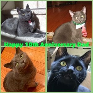 and 9 and an orange tabby aged 3. I’ve always wanted a gray kitty, they’re so gorgeous. 🤩 Mine are all rescues too - the best kind!