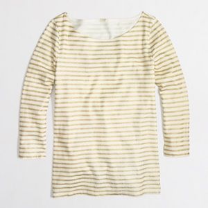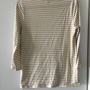 Lovely metallic gold strip top. 3/4 sleeves. 100% cotton. Only worn a few times. Has a comfortable fit. Great with jeans but adds a little more with the metallic stripes. 🚭 & 🐶🐱free home