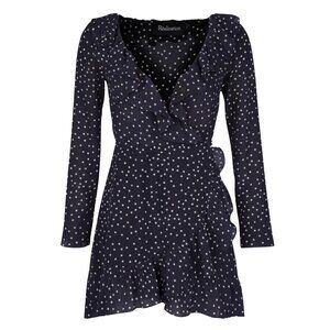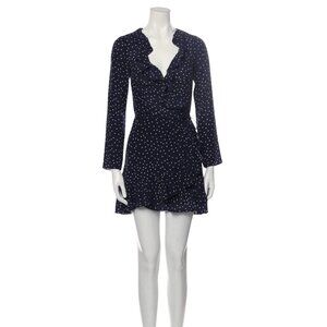 591. REALISATION Par Alexandra Blue Star Print Silk Ruffle Wrap Mini Dress Sz L