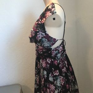 NWT!! Perfect for wedding, date night, girls night, wedding or even a concert!! BCBGeneration floral dress with pleated skirt. Lovely tie back with straps that also go over. Ruffle front.