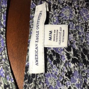 In great condition, only worn a few times; purple, black, green, and some white; adjustable straps with ruffled/textured fabric at the top.