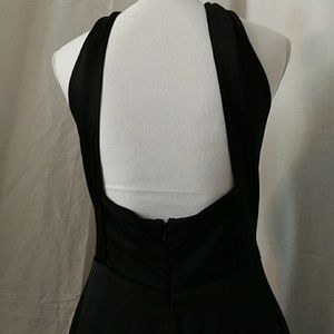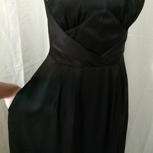 Like New. Worn Twice to Black Tie Events. 100% Silk. Stunningly elegant yet sexy AND practical with undetectable pockets at side seams. Bodice flows up into knot halter then wraps around to back as straps then around waist to create second open layer over bodice. Keyhole detail in front. Seamlessly Gorgeous. Fully lined. Waist: 28" Length: 56"