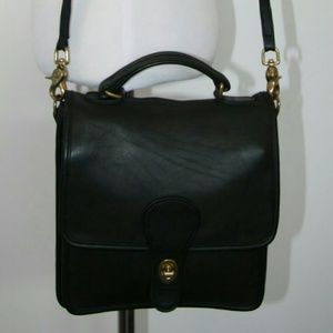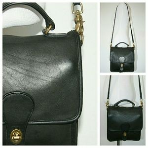 Vintage Coach Crossbody Purse. Black leather. Brass hardware. Authentic classic Coach.
