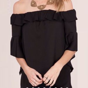 Low stock! S-M sassy Black Ruffle off shoulder top