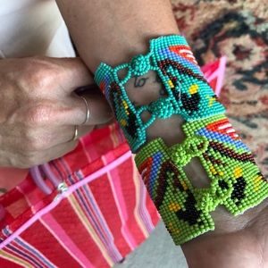 Handbeaded and so ornate! Adjustable closure with two sizes for the perfect fit. Choose from 5 colors! Each bracelet is handmade by artisan in Mexico and is 2" Wide and 6" L not including closures.