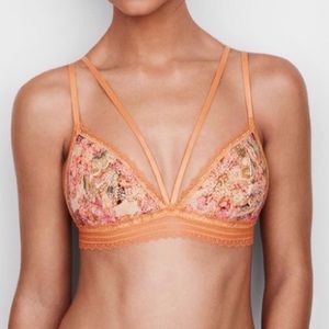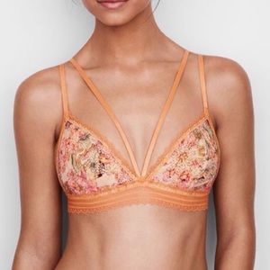 Victoria's Secret Crochet Lace Triangle Bralette in Strappy Gold Earth Print. New in plastic. Size Small.