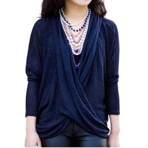 ๐LAST ONE! ๐HP๐ Stunning bell sleeve crochet detail navy BOHO tunic. V-neck; loose swing fit. Lightweight for multiple seasons. Shoulder and arm embroidering. Crochet details. 100% textured Rayon. Just lovely!!
