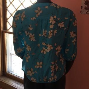 LOFT Blue Floral Print Blouse