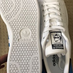 Brand new in packaging white and navy adidas Stan Smith sneakers. Women's size 7.5 and men's size 6