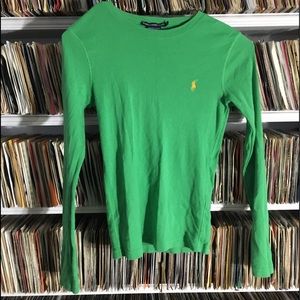 This is a simple green long sleeve 100% cotton long sleeve shirt. It's a size small. It's in good shape but please understand with all used and vintage clothes there may be small imperfections that I did not initially detect.