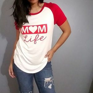 'MOM LIFE' RED WHITE GRAPHIC TEE TOP