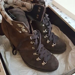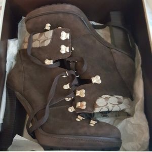 The Coach Carol boots feature a suede upper with a round toe. The man-made outsole lends lasting traction and wear.