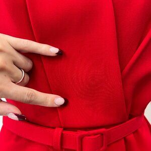 $598 Lafayette 148 Red Belted Sheath Jude Pleated Dress size 12