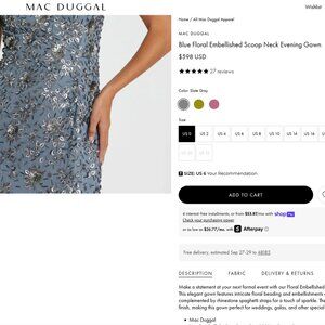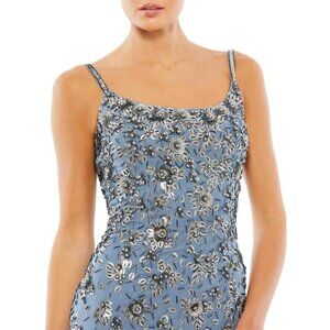 $598 Mac Duggal Size 4 Slate Blue Silver Floral Embellished Long Maxi Dress Gown