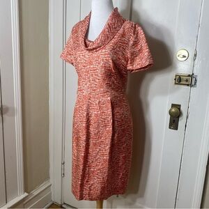 This is a beautiful skirt by Victoria Beckham, orange with front scalloped edge pocket, side zipper. Waist 42 inches, length 18 inches. See pictures for details. Good condition. Be sure and check out other items in closet and bundle to receive discounts.
