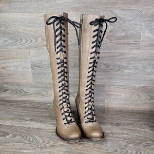 $599 Frye Julia Tall Lace Up Tan Beige Real Leather Military Zip Up Heeled Boots