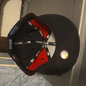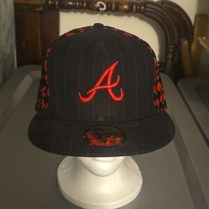 59Fifty New Era Atlanta Braves FITTED Hat 5950 Black/red/ Pinstripe MLB 7 3/8
