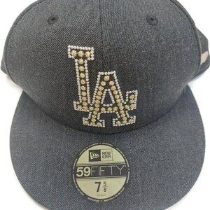 59Fifty New Era Los Angeles Dodgers Fitted Hat Cap Charcoal Gray Size 7 5/8