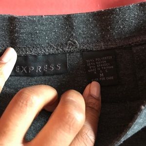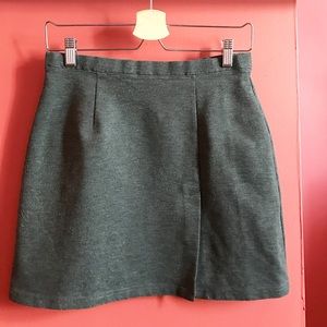 Grey Express skirt, great for the upcoming fall season. This item will look great with a sweater or button up with tights or knee high socks and a boot. 16.5in from waist to hem, 7in covered front slit