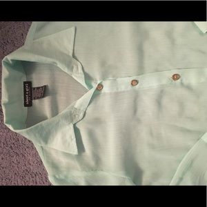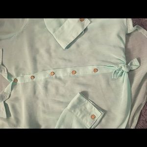 Mint button-down. Great for dressing up or dressing down. Slightly see-through, but can easily be worn with a cami.