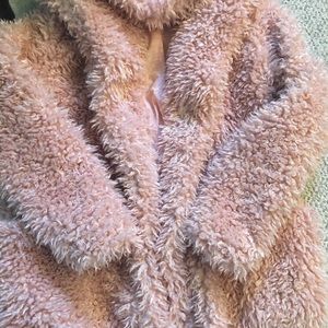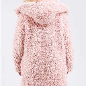 Vintage Style Shaggy Coat with Hood- DUSTY PINK