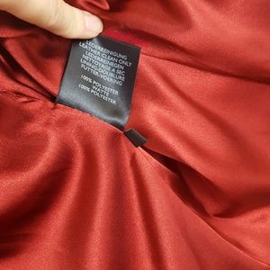 Beautiful genuine leather red jacket❤ I wore it only a couple of times, red is not my color😅 There is a slight natural variation of color on the leather due to dying process. Also it darkens a little if you are under the rain, but once dry it returns to original color 100%. Front pockets with zippers. Upper pockets are faux