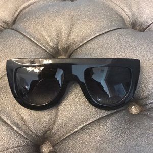 Made of Acetate and Nylon, this specific pair of Celine CL 41398/S Andrea sunglasses are durable and trendy. The Dark Grey Gradient/Category: 3 lenses matches well with the Black frames, it is such a classy and fashionable combination. Glasses only. Enjoy these glasses at a fraction of retail cost. Sexy yet classy look. ๐ถ