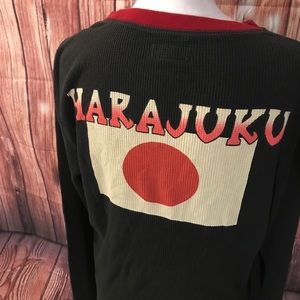 Brand new with tags, never worn Lind sleeved thermal shirt for men. Harajuku design on the back. Collar and sleeves outlined in red. Vintage inspired size large.