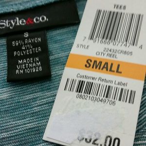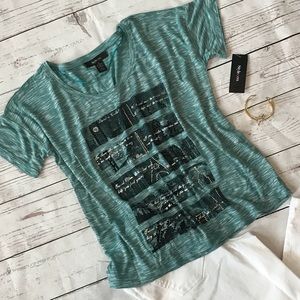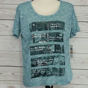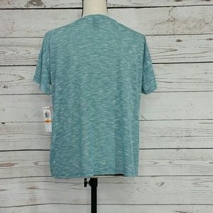 Cute teal, black, silver heathered loose, oversized top. New with tags. Bust: 45"; length in back from the shoulder to the hem:23 1/4". Measurements are approximate. Smoke free home. Thanks for stopping by.