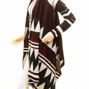 BOHO Wonderful Wool Blend Draped Open Front Tribal Aztec Duster Cardigan, Long Sleeve, Asymmetric hem, Ultra-soft... Just perfect in any sense...