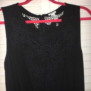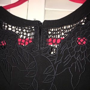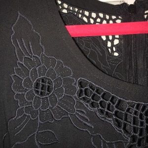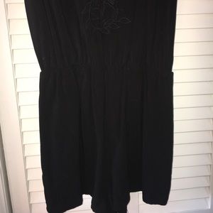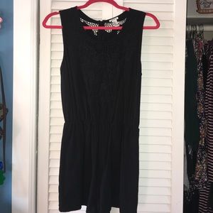 Black romper with lace and a floral pattern. The first picture is kinda bad to capture all of the details but scroll through to see the beautiful lace designs! Zipper in the back. Perfect for a night out!