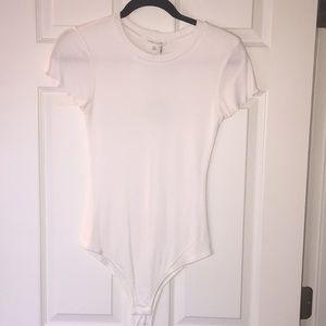 White body suit button at the bottom. Forms to body shape