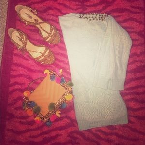 Brand new light real sweater with gold studs
