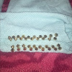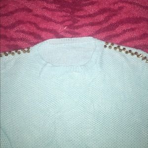 Brand new, no tags. light teal light waffle knit type sweater with gold round pyramid studs on shoulders ✨never worn, too small. No tags, was listed as a large but fits like a medium.