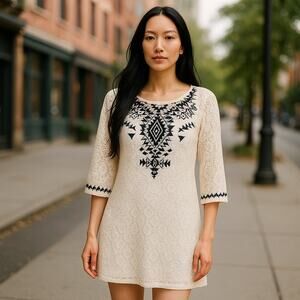Ties in the back at the neck.