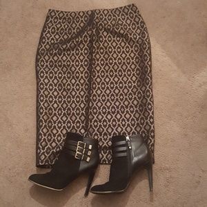 Golden palace skirt with intricate design. Straight line and no stretch with zip closure.