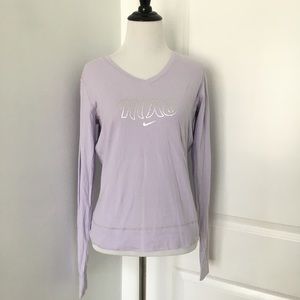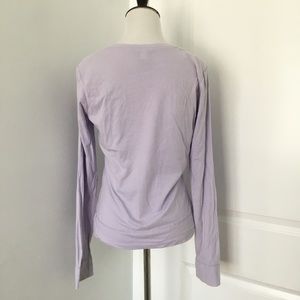 Super cute light pastel purple longsleeve tshirt with metallic silver foil lettering!