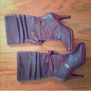 Brown, faux slouchy boots from Kenzie. Size 7. Fun detailing on the heel. In EXCELLENT CONDITION, only worn once!