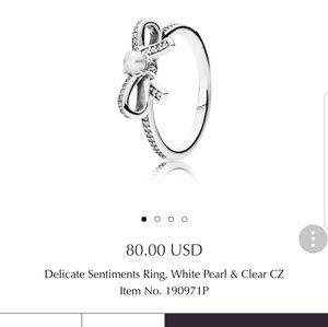 PANDORA Sterling Silver Delicate Sentiments, White Pearl and Clear CZ Ladies Ring. Sz. 52(U.S- Sz.6). Great condition, worn only a few times. No stones missing at all, bought directly from PANDORA Store. PANDORA ring box included.