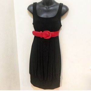 Maurices black dress and belt. Could be worn as long tank/shirt with leggings but listing as a dress. New with tags. Very cute! Size is x-small but runs large. I would say it fits from x-small to small to medium. Red belt is also from maurices. Previously worn with past outfits throwing it in with the sale of this dress.